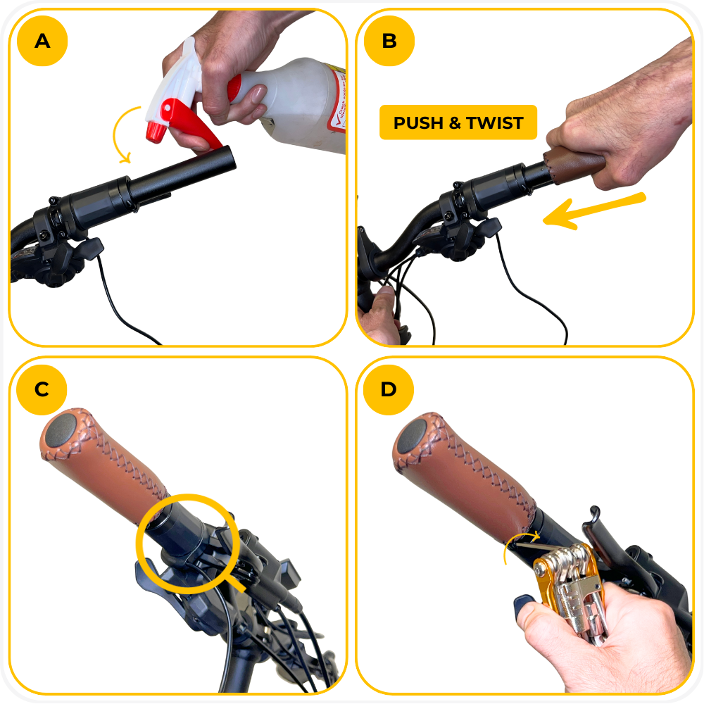 - Push and twist the grip back onto the handlebar until it’s fully seated and aligned.