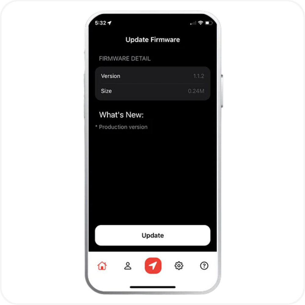 Once your Scout is connected, tap the three dots in the Knog app to open more options. Scroll down and select Update Firmware.