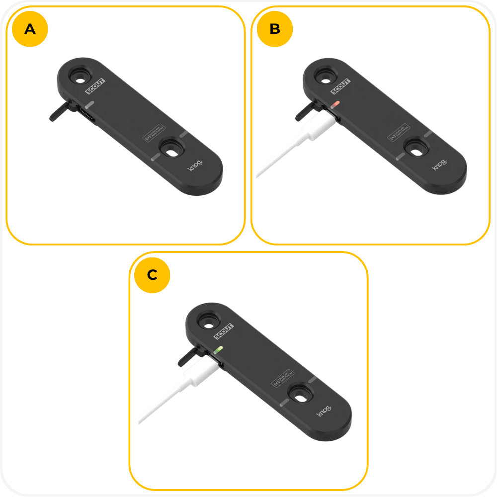 Connect the Scout to a USB power source using a USB-C cable. After a few seconds, you’ll hear a 3-tone beep indicating the device is in pairing mode. Pairing mode stays active for 10 minutes.