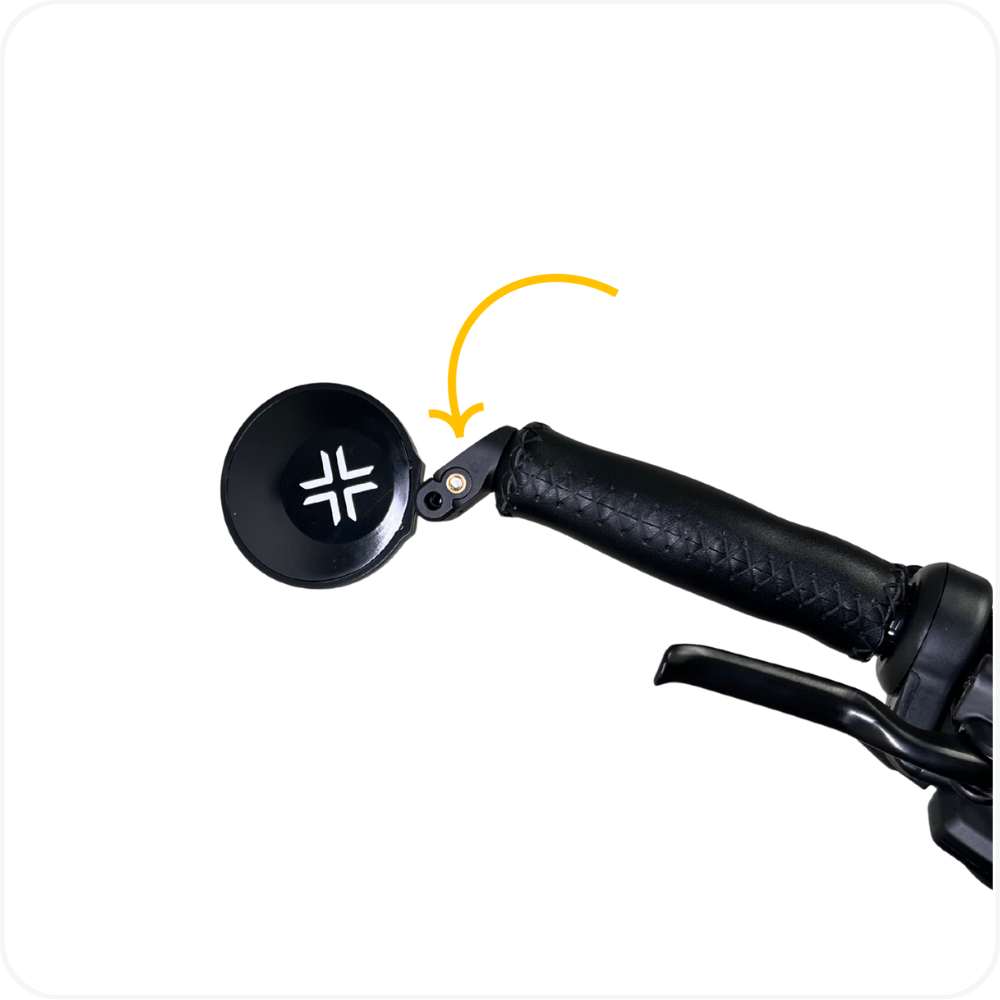 - Rotate and tilt the mirror to your preferred viewing angle. The mirror can be adjusted freely and fine-tuned while seated on the bike.