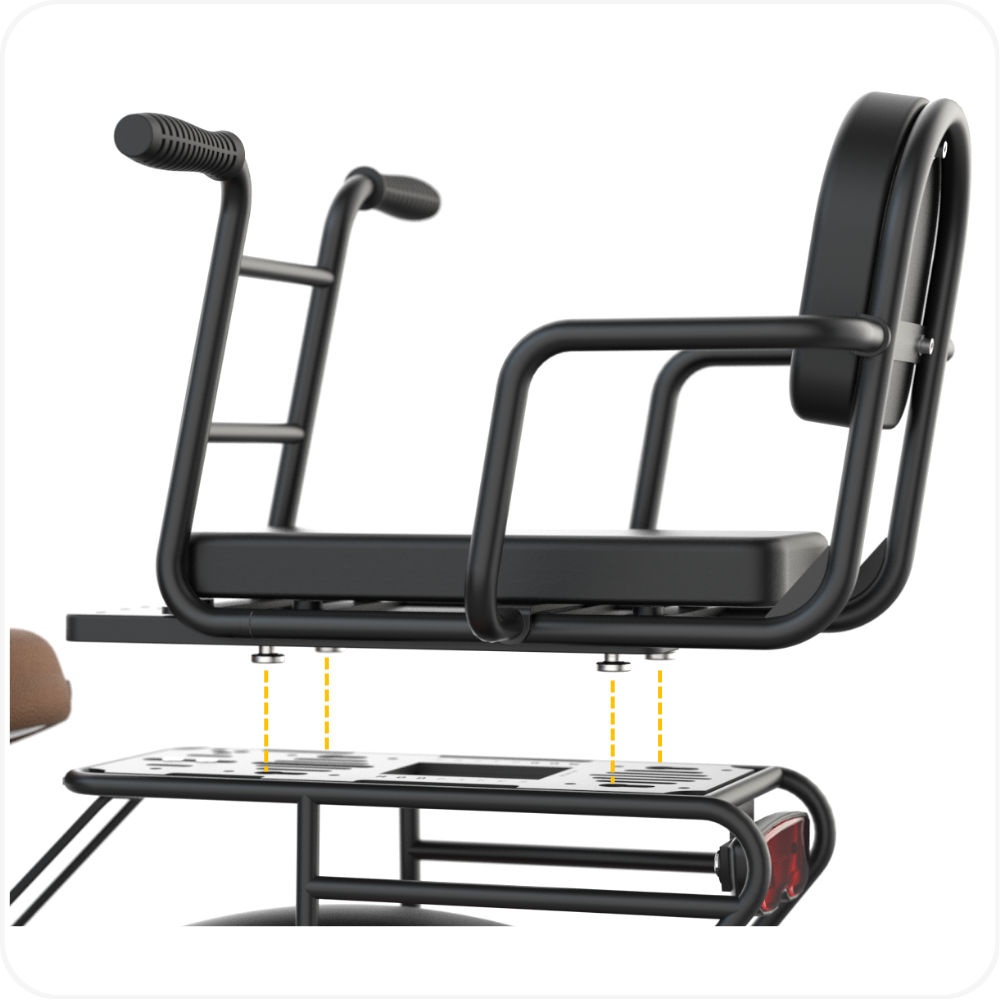 The newly redesigned MOD Snap-On Bench is now fully modular, offering four different assembly configurations to suit your rider’s age, weight, and riding style. It securely mounts to any MOD BIKE rear rack using our signature Snap-On system and supports riders up to 65 lbs. Whether you're outfitting a MOD Cargo with two benches for a longer seat or customizing for a single passenger, this versatile bench adapts to your needs.