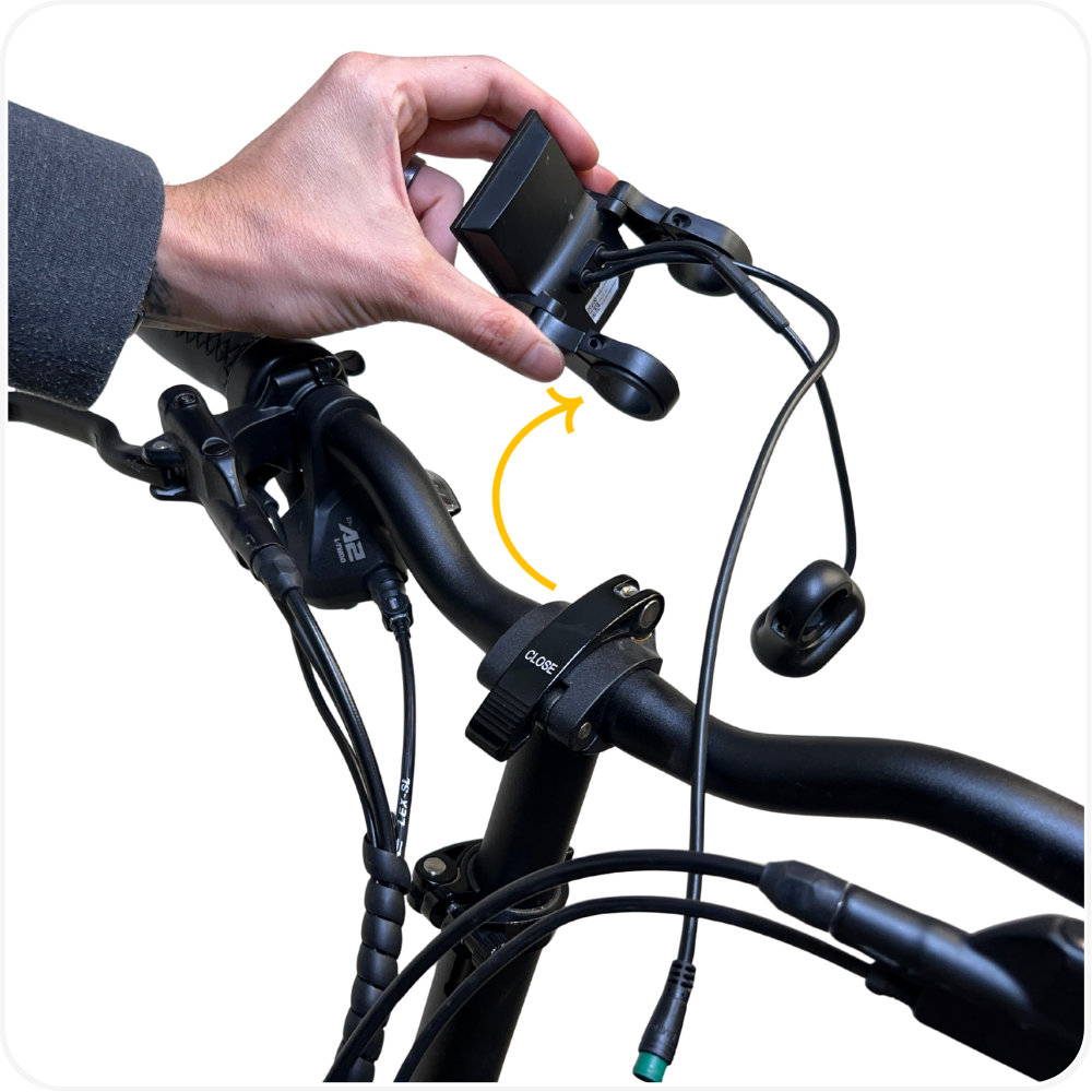 Slide the new display onto the center of the handlebar, making sure to include the rubber circular pads under the clamps.
