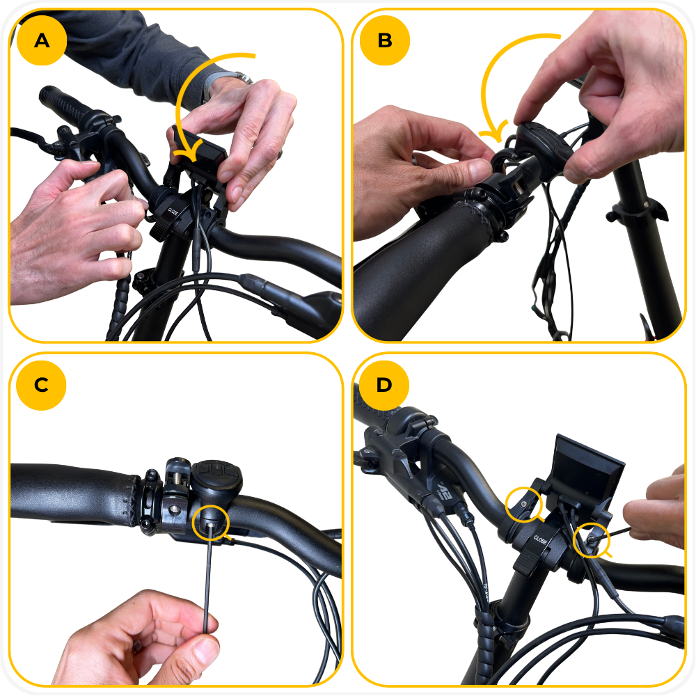 - Work in a bright area where you can easily access your handlebars and display cable.