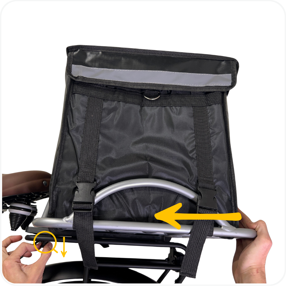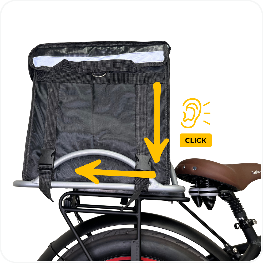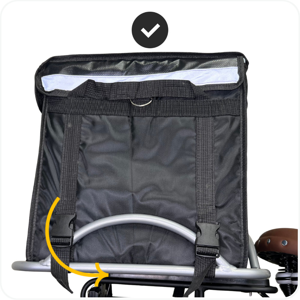 ⚠️ Note: Do not ride if the delivery bag is loose. Re-secure before use.