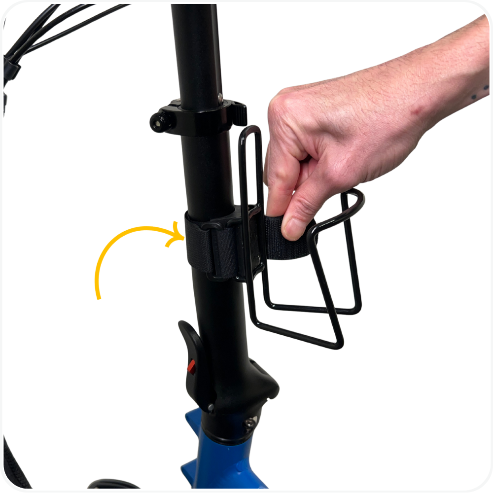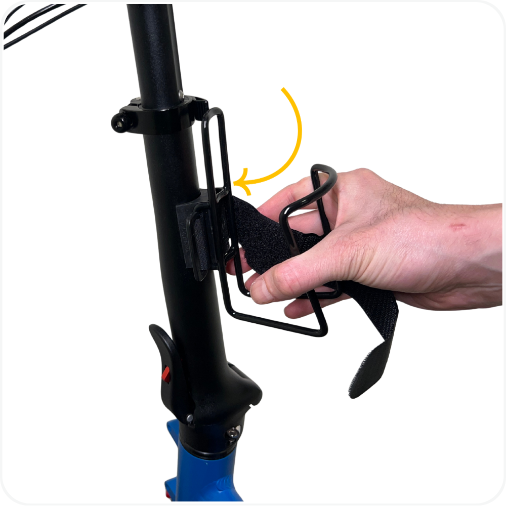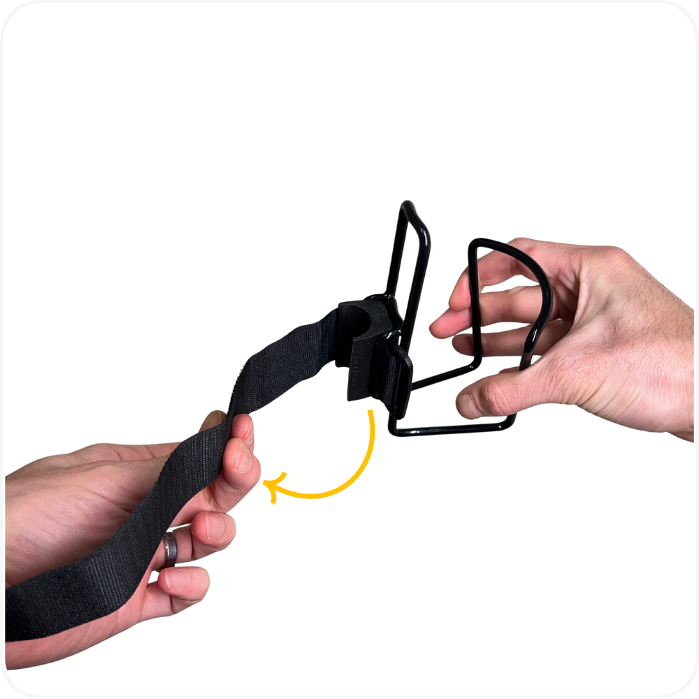 - Wrap the strap tightly around the frame and press the Velcro firmly to secure the holder.