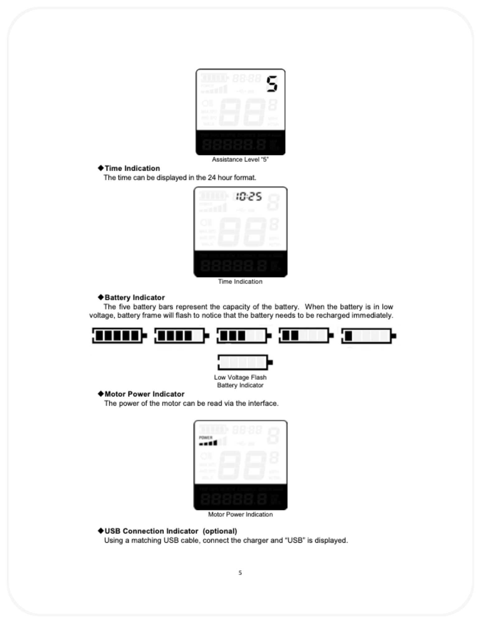- Motor does not engage when pedaling → Confirm the assist level is set above Level 0 and that no brake levers are being pressed or stuck.