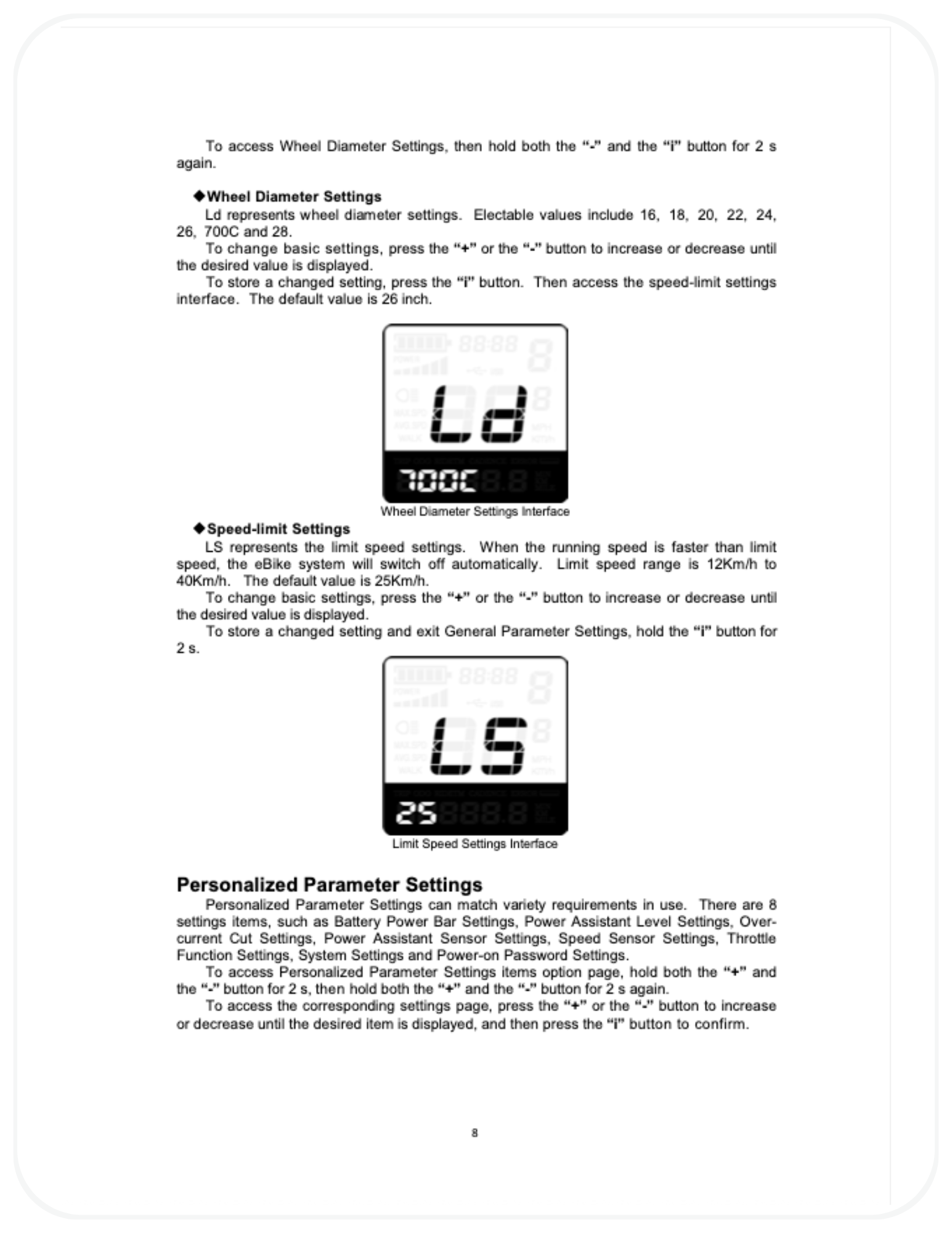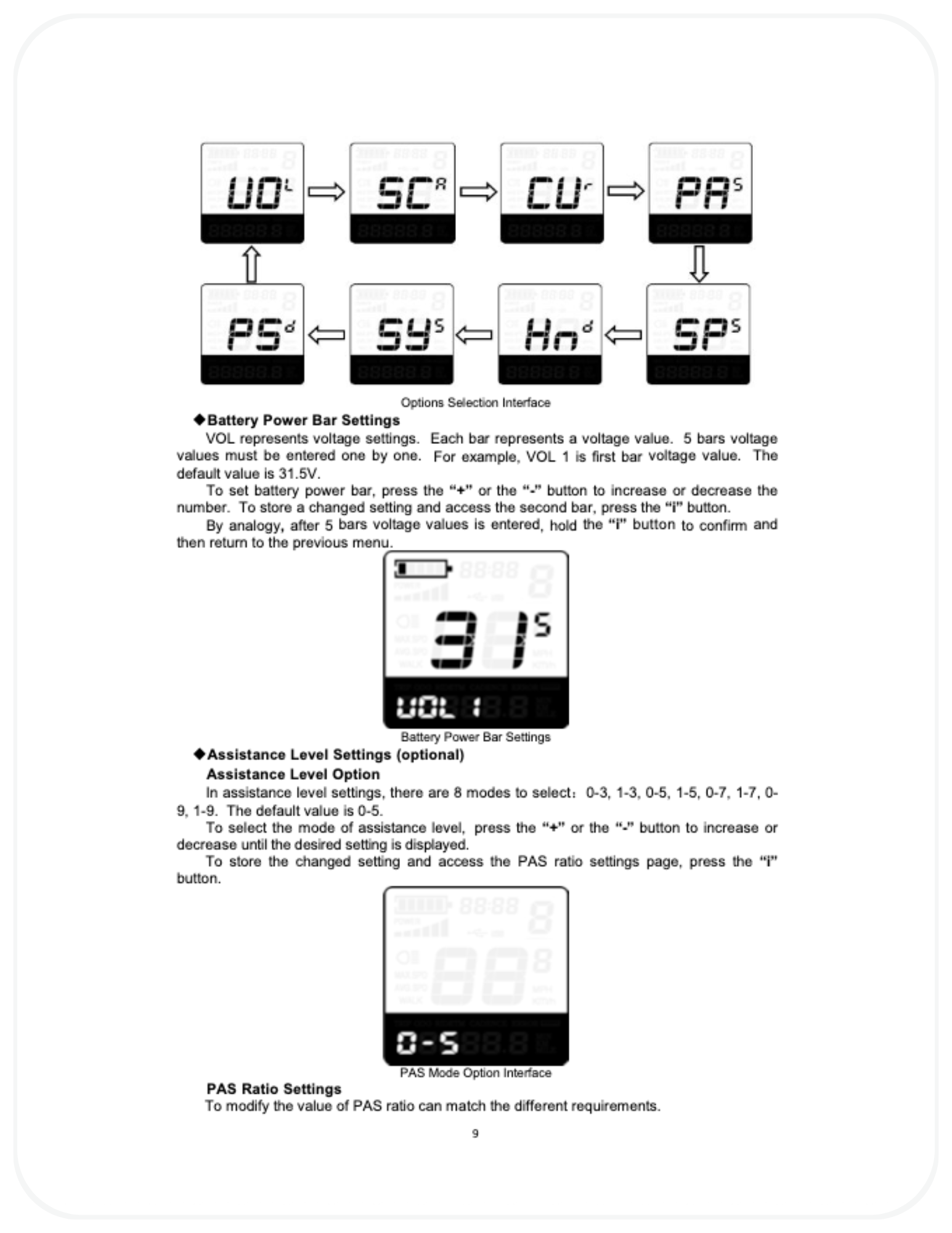 Yes. Incorrect changes to advanced parameters such as PAS ratios, current limits, or wheel size can cause performance issues or component damage. - Why does the battery indicator drop suddenly?