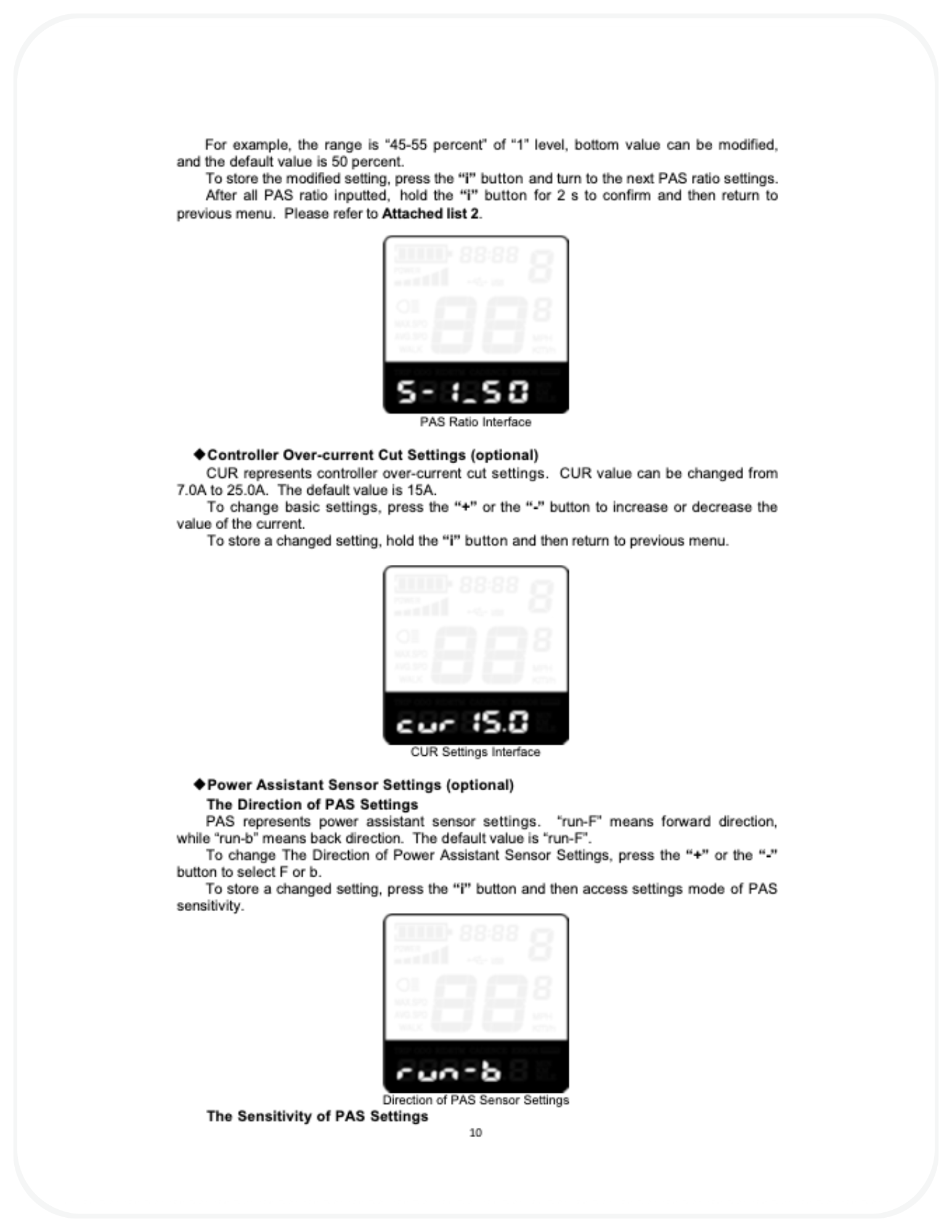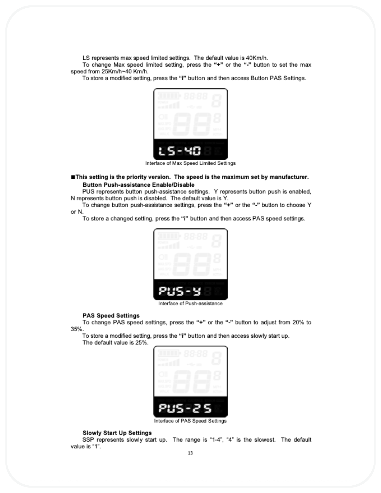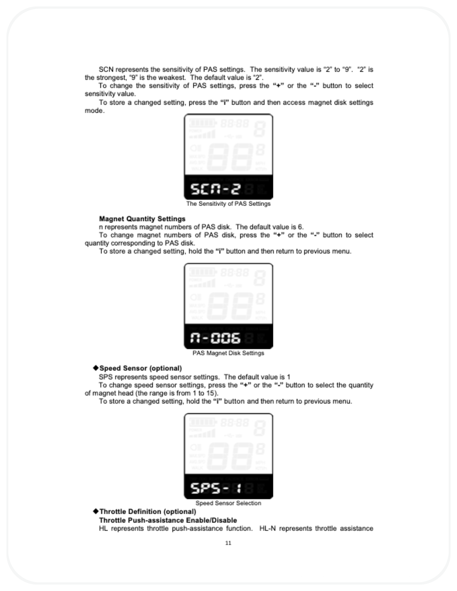 - Assist feels weak or inconsistent → Verify PAS sensitivity and PAS ratio settings have not been reduced and that the battery is sufficiently charged.