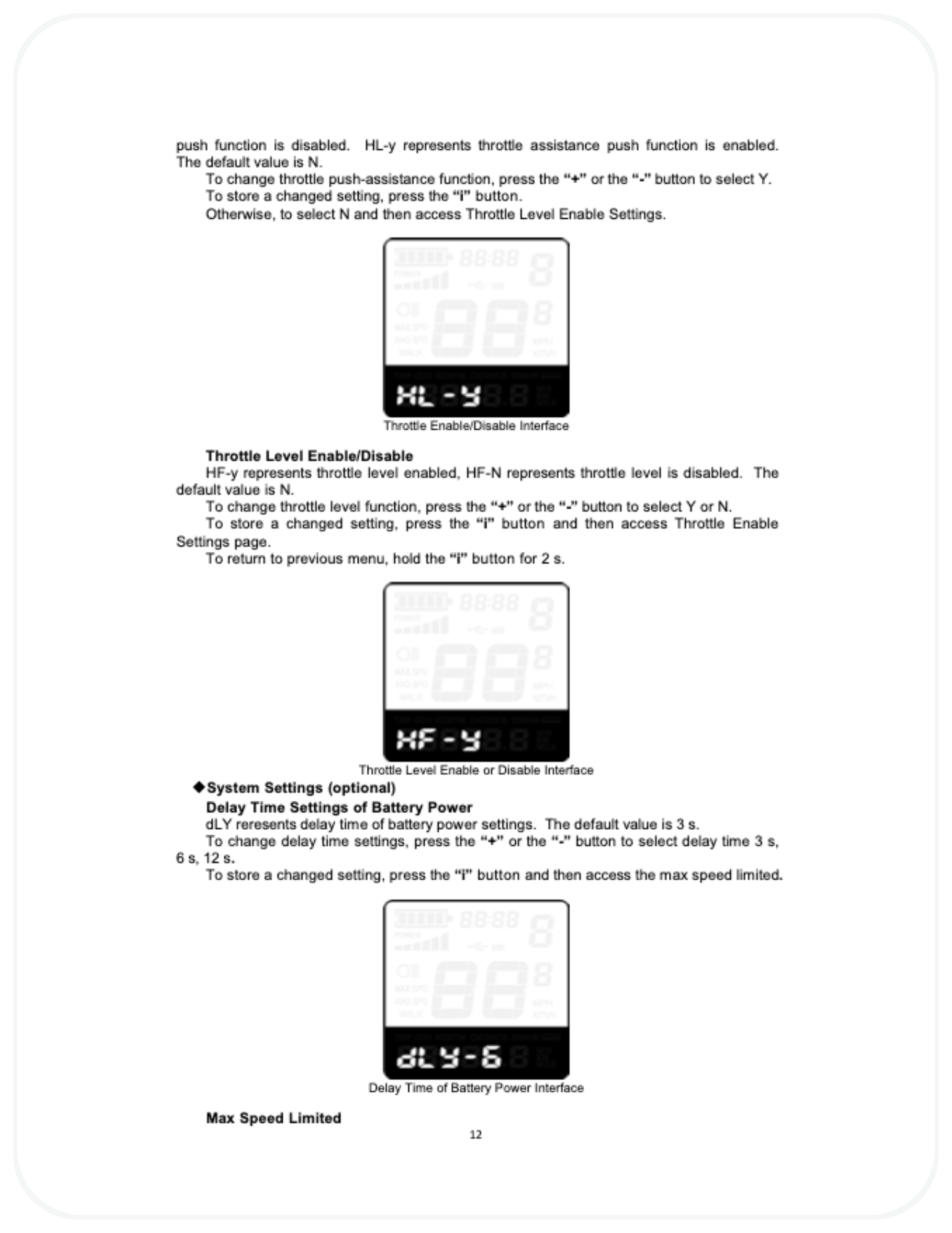 If a password is enabled and forgotten, the display must be reset by a qualified technician. The password cannot be recovered by the user. - Does adjusting the display increase top speed?